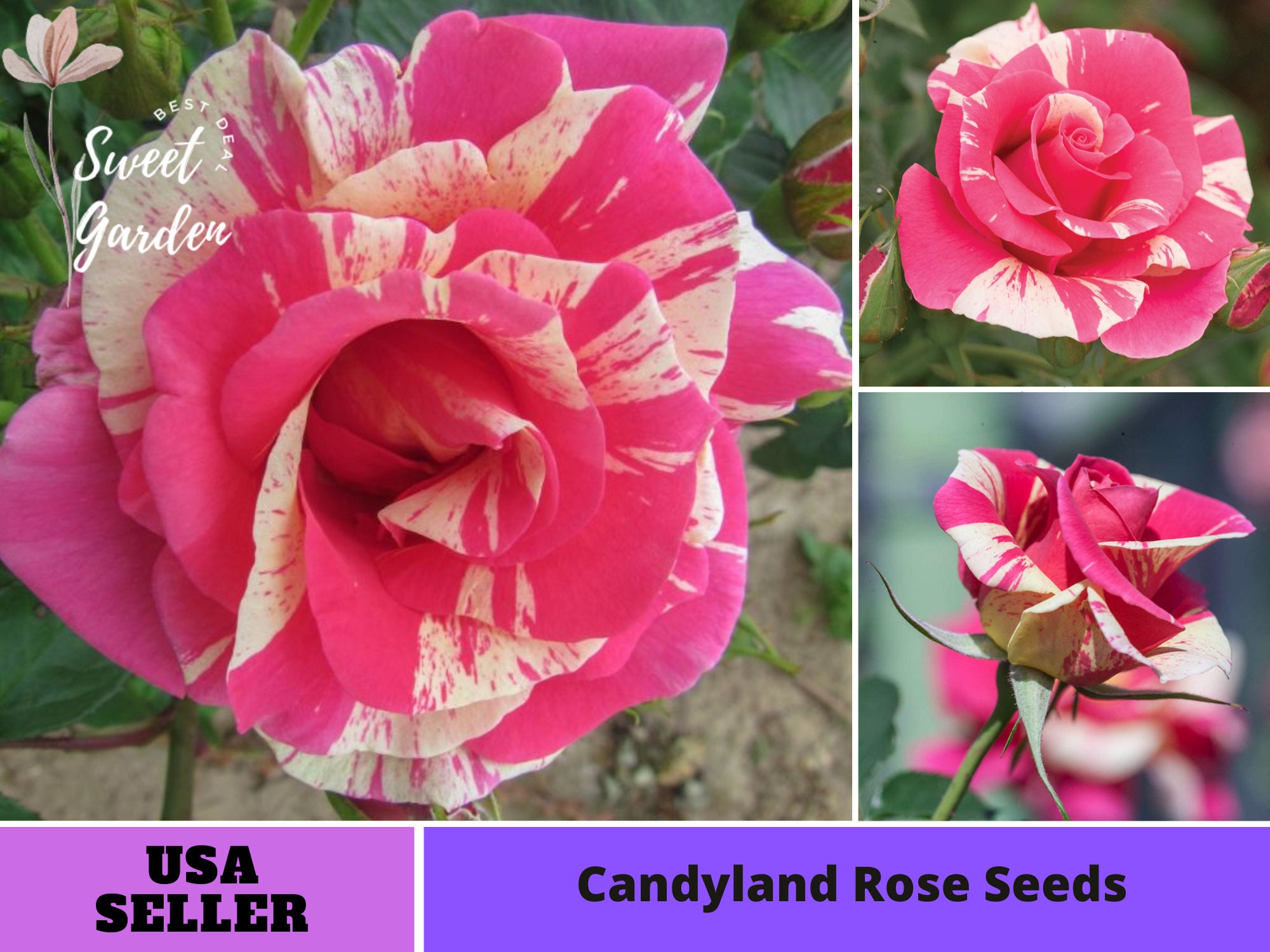 32 Seeds Candyland Rose Seed Flower Bush Pink White Rare Etsy Schweiz